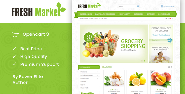 Fresh Market OpenCart Template is specially designed for food stores. Fresh Market OpenCart Template looking good with it’s color combination. All sub pages are customized. It is very nice with its clean and professional look.